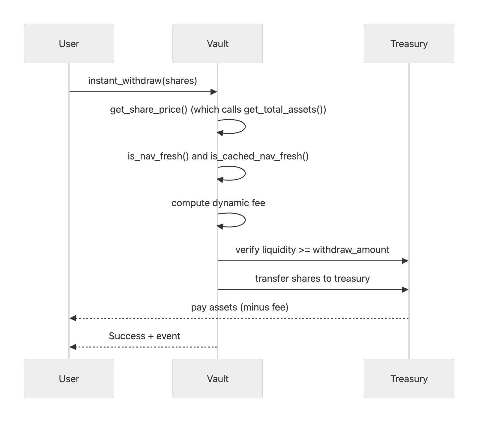 Example sequence diagram for Instant Withdraw (shares → assets with dynamic fee) high-level logic.